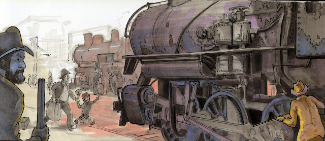 Acrylic ink on water color paper. this frame is an illustration from "a good man is hard to find" cool short story.